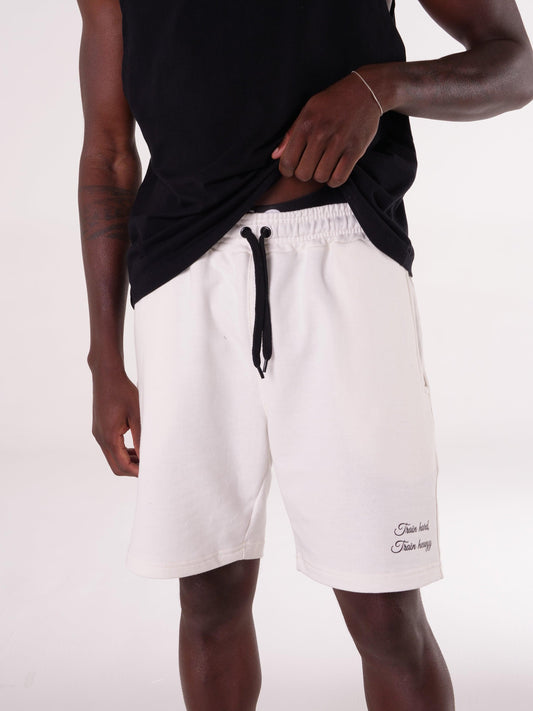 ECONOMIZE R$80,00 ÚLTIMAS UNIDADESBermuda Moletom Train hard Train Heavyy Off White