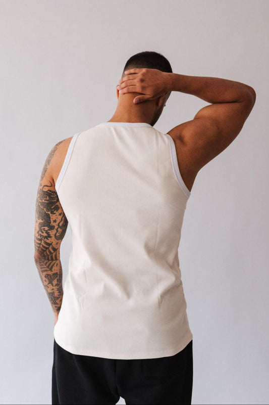 ECONOMIZE R$20,00Regata Canelada de Algodão com Elastano Off White com Branco