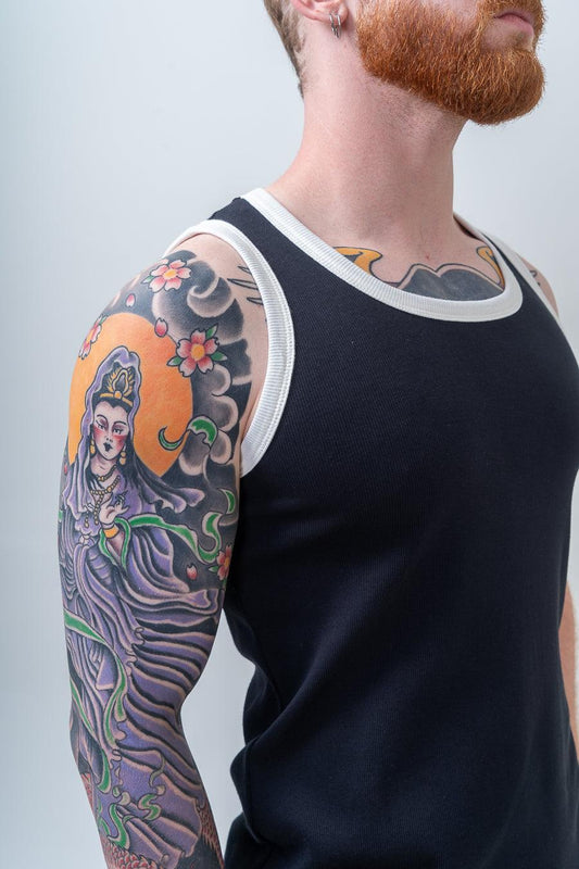 ECONOMIZE R$20,00 ÚLTIMAS UNIDADESRegata Canelada de Algodão com Elastano Preta com Off White